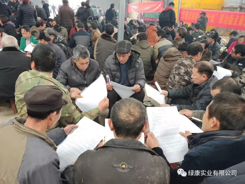 會議正式開始之前綠康工作人員向農戶發(fā)放柑橘種植管理技術一覽表,農戶學習的熱情很高,都在認真閱讀。